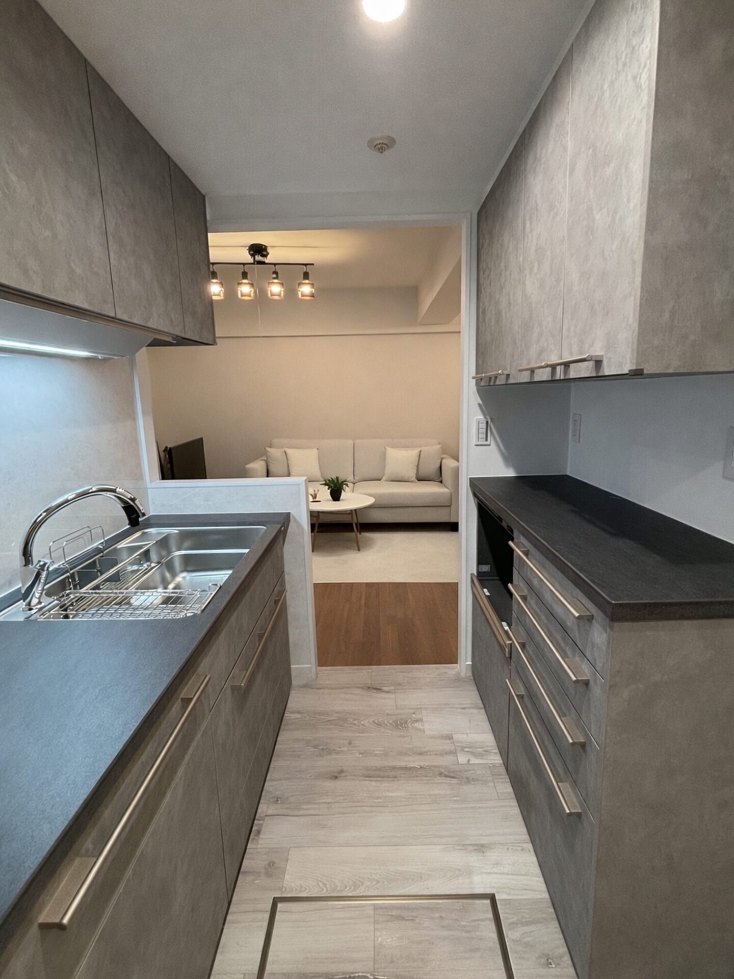 シンクやコンロの位置変更、設置が難しい60cm幅のフロントオープン食洗機の導入など大掛かりな工事でしたが、担当者の方をはじめ職人の皆さまが一丸となって希望を叶えてくださいました。壁を撤去したことで、家族と会話を楽しみながら料理ができる理想のキッチンに。憧れていた食洗機にも毎日助けられ、大満足の仕上がりです。